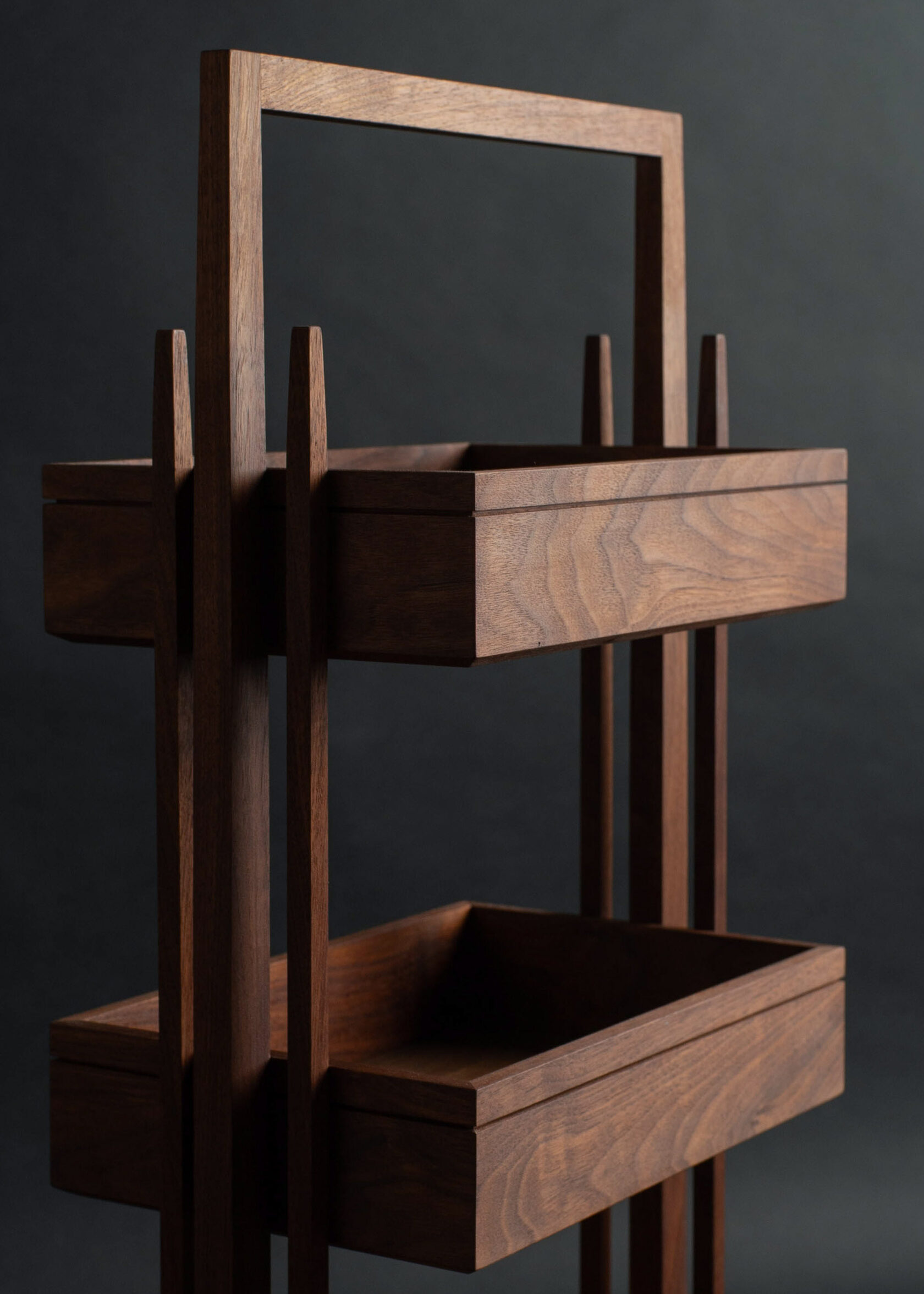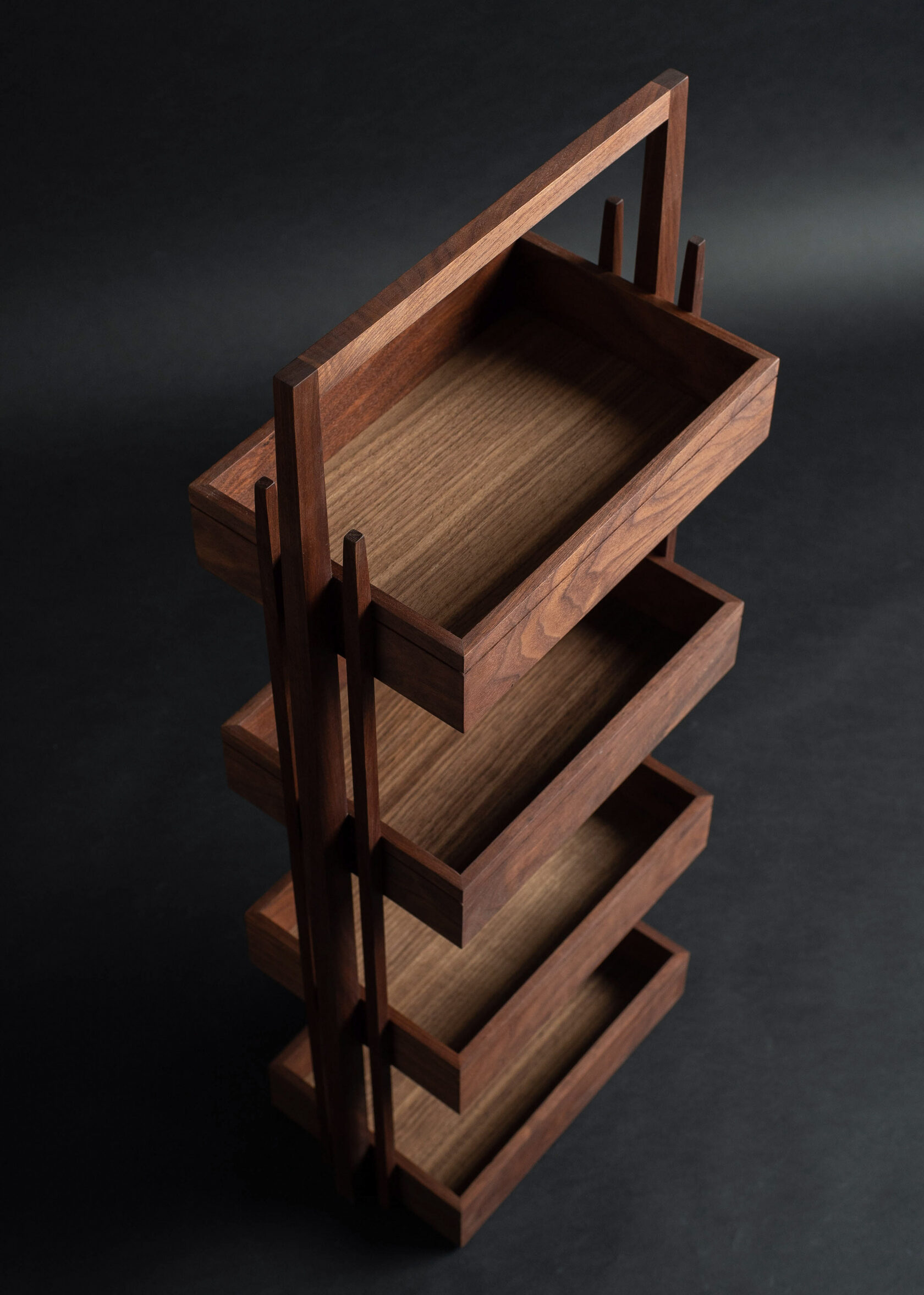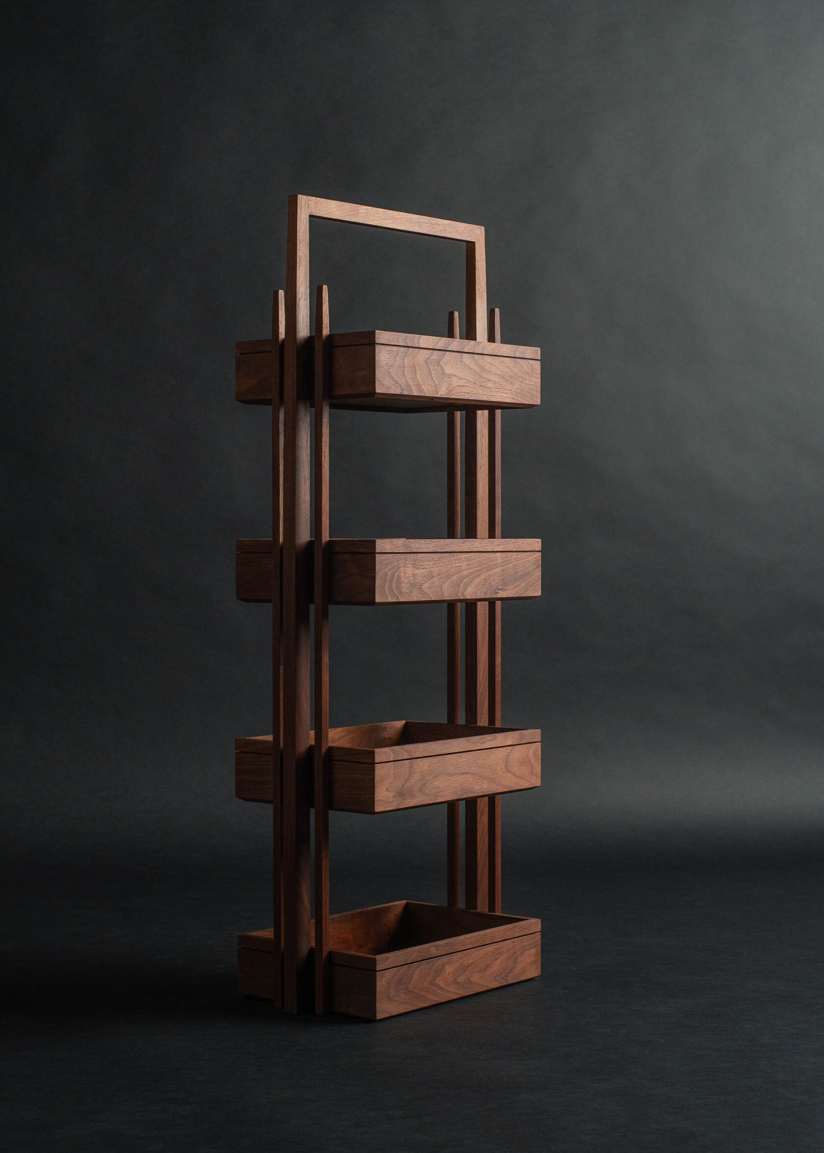 Устремленность вверх, заостряющиеся вертикальные элементы в перекличке с ритмичной теневой горизонтальной полосой - архитектурные элементы стиля ар-деко, которые стали вдохновляющим началом для создания дизайна этажерки.